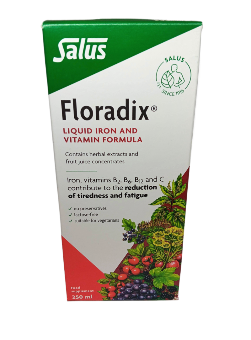 Typical Ingredients:Aqueous extract (54%) from: Carrots, Nettles, Spinach, Quitch Roots, Fennel, Ocean Kelp, African Mallow Blossom. Mixture of fruit juice concentrates (29.4%): Pear, grape juice concentrate, blackcurrant juice, water, blackberry, cherry, orange, red beet, lemon juice concentrate, carob extract, apple juice concentrate. Other ingredients: Honey, Aqueous rosehip soft extract containing 4% vitamin C, Iron (as ferrous gluconate), Wheat Germ Extract, Vitamin C (Ascorbic Acid), Natural flavours, Thiamin (as Thiamine HCI), Riboflavin (as Riboflavin Sodium Phosphate), Vitamin B6 (as Pyridoxine HCI), Vitamin B12, Maltodextrin.